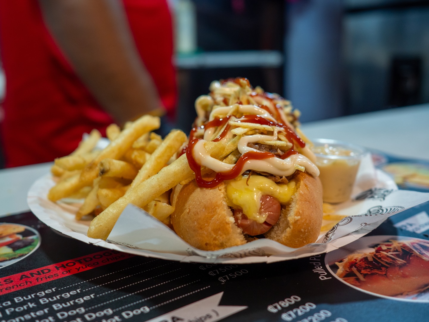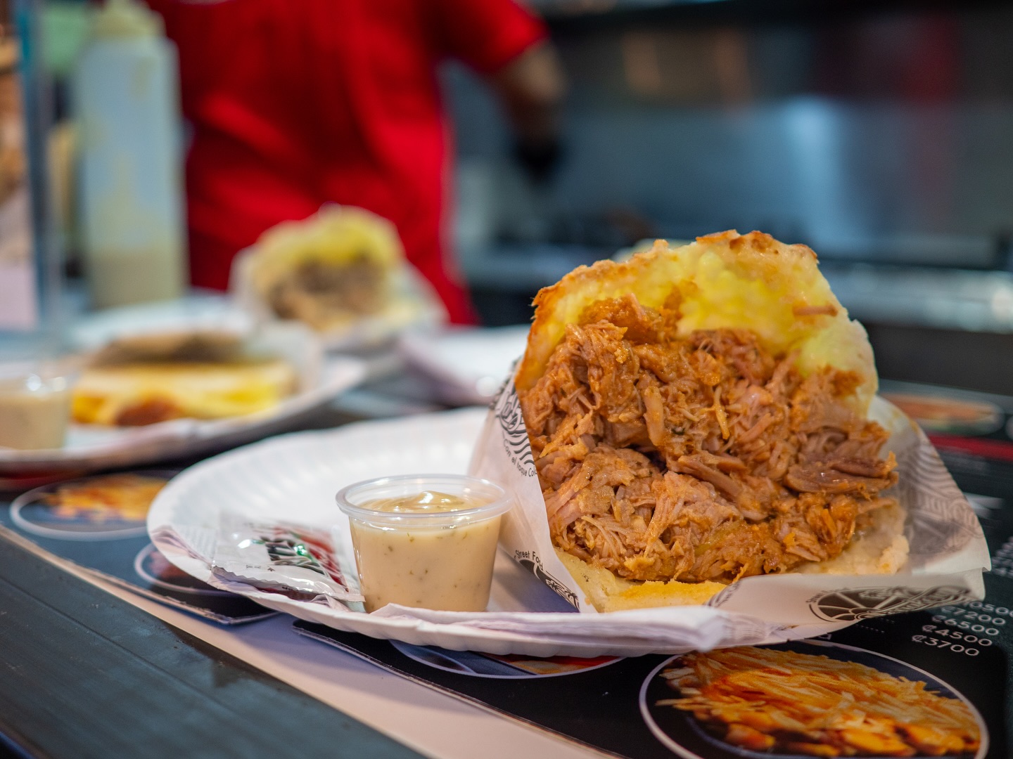 Their burgers and hotdogs stand out for their generous toppings and unmistakable Colombian flair, while the star of the menu—their fantastic arepas—captures everything that makes this cuisine so beloved. Each arepa is crafted with traditional ingredients and techniques, creating a unique combination of textures and flavors you won’t find anywhere else in town. The result is comfort food with personality: satisfying, flavorful, and full of cultural character.